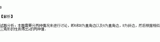 如果一个直角三角形的两条边长分别是6和8,另一个与它相似的直角三角形边长分别是3和4及x,那么x的值( )