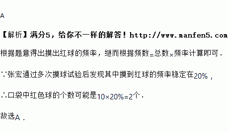 在一个不透明的布袋中,红色、黑色的球共有个,它们除颜色外其他完全相同.张宏通过多次摸球试验后发现其中摸到红球的频率稳定在![]()