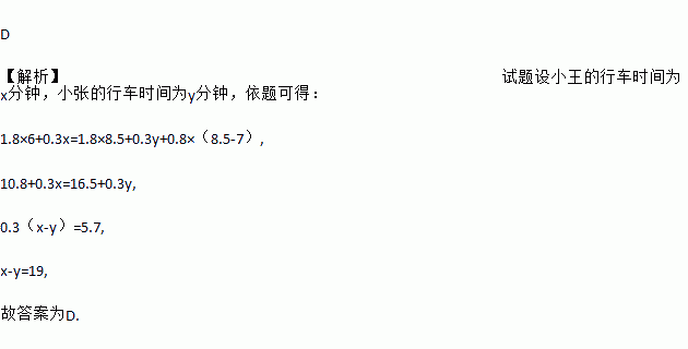 小王与小张各自乘坐滴滴快车,行车里程分别为6公里与8.5公里,如果下车时两人所付车费相同,那么这两辆滴滴快车的行车时间相差( )