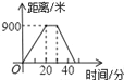 小明的父亲从家走了20分钟到一个离家900米的书店,在书店看了10分钟书后,用15分钟返回家,下列图中表示小明的父亲离家的距离与时间的函数图象是( )