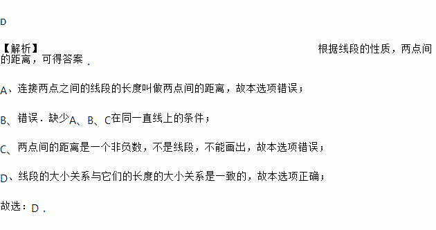D. 线段的大小关系与它们长度的大小关系是一致的