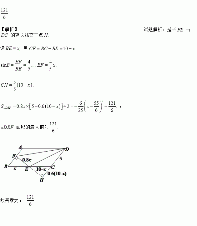 如图,在平行四边形中, , , , 为边上的一个动点(不与、重合),过作直线的垂线,垂足为,则面积的最大值为__________.