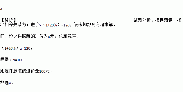 一件服装标价200元,若以6折销售,仍可获利20%,则这件服装的进价是( )
