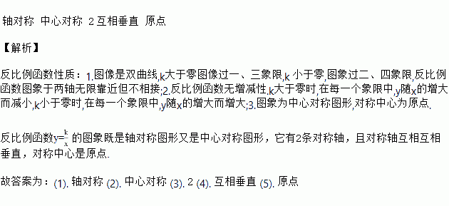 反比例函数y=的图象既是_________图形又是_________图形,它有_________条对称轴,且对称轴互相_________,对称中心是_________.