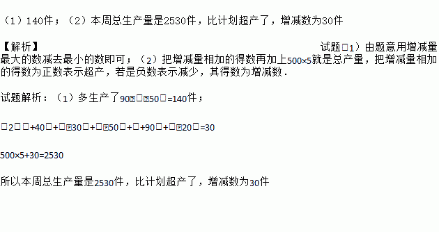 (2)本周总生产量是多少?比计划超产了还是减少了?增减数为多少?