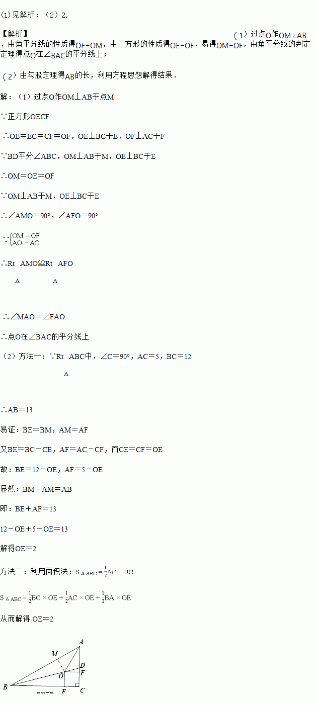 如图,在ABC中,∠C=90º,BD平分∠ABC,交AC于D,点O、E、F分别在BD、BC、![]()