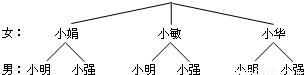 由此可知,共能组成6对:小娟与小明,小娟与小强,小敏与小明,小敏与小强,小华与小明,小华与小强,