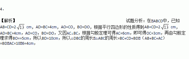 cm,AD=4 cm,AC⊥BC,则△DBC比△ABC的周长长_______________cm.
