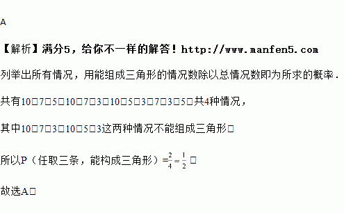 从长为,,,的四条线段中任选三条,能构成三角形的概率是( )