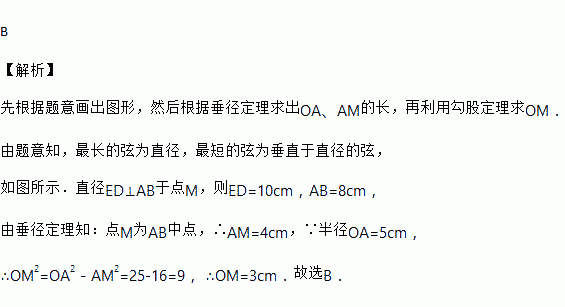 过⊙O内一点M的最长弦长为10cm,最短弦长为8cm,那么OM的长为( )