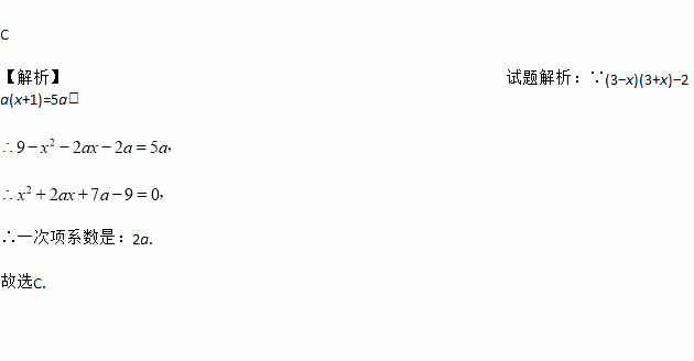 C 【解析】试题解析:∵(3?x)(3+x)?2a(x+1)=5a, ∴一次项系数是:2a. 故选C.