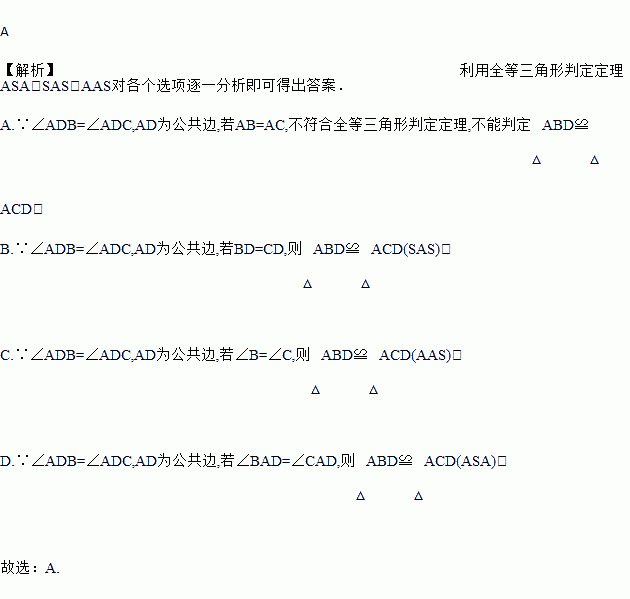 如图,已知∠ADB=∠ADC,则不一定能使△ABD≌△ACD的条件是( )