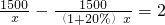 某市今年计划修建一段全长1500米的景观路,为了尽量减少施工对城市交通的影响,实际工作效率比原计划提高了20%,结果提前2天完成任务,若设原计划每天修路x米,则根据题意可列方程________.
