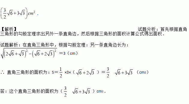 已知直角三角形斜边长为(2+)cm,一直角边长为(+2)cm,求这个直角三角形的面积.