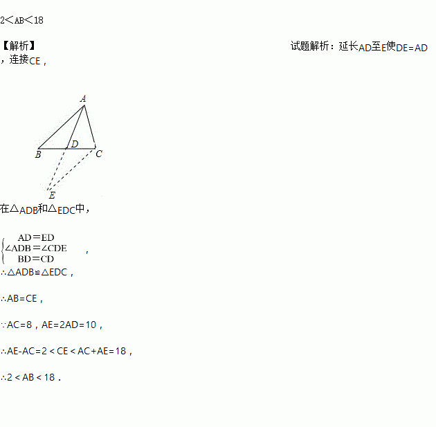 .如图,AD是△ABC中BC边上的中线,若AD=5,AC=8,则AB的取值范围是__________.