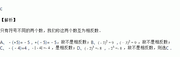 A. ﹣(+5)和+(﹣5) B. (﹣3)2和(+3)2 C. ﹣(﹣4)和﹣|﹣4| D. (﹣2)3和﹣23