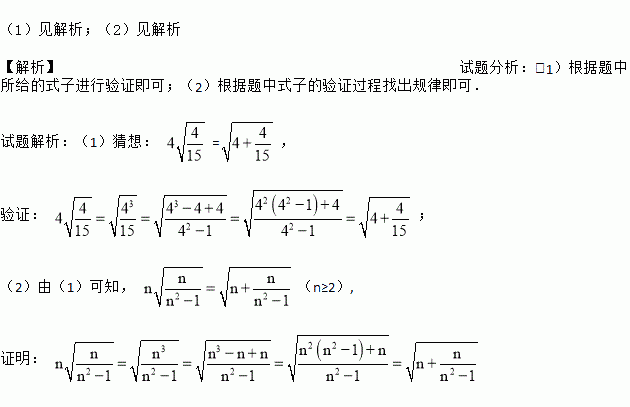 (1)按照上述两个等式及其验证过程的基本思路,猜想4
