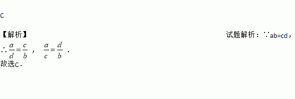 已知线段a、b、c、d,如果ab=cd,那么下列式子中一定正确的是 ( )