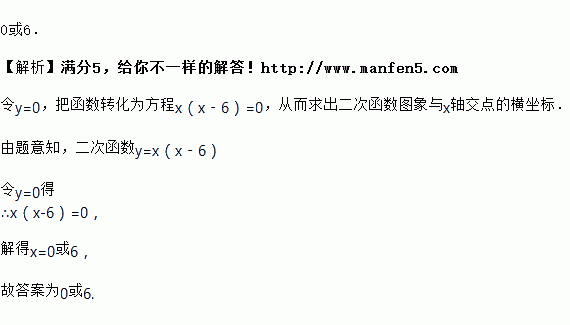 二次函数y=x(x﹣6)的图象与x轴交点的横坐标是_____.