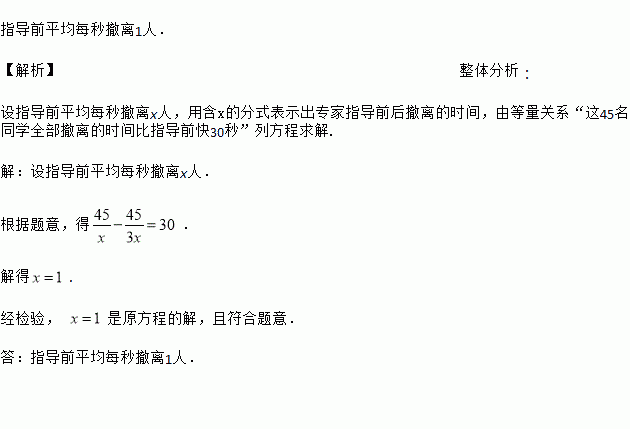 某班有45名同学参加紧急疏散演练.对比发现:经专家指导后,平均每秒撤离的人数是指导前的3倍,这45名同学全部撤离的时间比指导前快30秒.求指导前平均每秒撤离的人数.