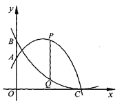 如图、点A、B分别为抛物线 、与y轴交点,两条抛物线都经过点C(6,0)。点P、Q分别在抛物线 、 上,点P在点Q的上方,PQ平行y轴,设点P的横坐标为m。