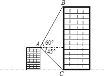 如图所示,小明在家里楼顶上的点A处,测量建在与小明家楼房同一水平线上相邻的电梯楼的高,在点A处看电梯楼顶部点B处的仰角为60°,在点A处看这栋电梯楼底部点C处的俯角为45°,两栋楼之间的距离为30m,则电梯楼的高BC为_____米(精确到0.1).(参考数据:≈1.414,≈1.732).