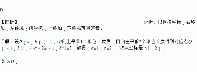 点P向上平移1个单位长度后,再向左平移2个单位长度得到对应点Q(-1,3),则P点坐标是( )