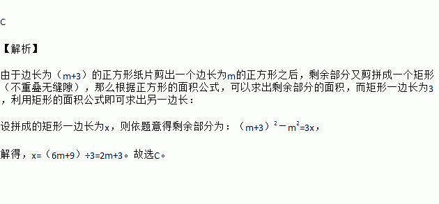 如图,边长为(m+3)的正方形纸片剪出一个边长为m的正方形之后,剩余部分