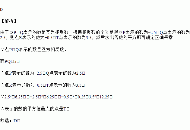 如图,数轴的单位长度为1,如果P,Q表示的数互为相反数,那么图中的4个点中,哪一个点表示的数的平方值最大( )