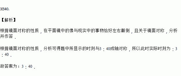 室内墙壁上挂一平面镜,明敏在平面镜内看到他背后墙上的时钟如图,则这时的实际时间是_____.