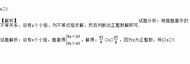 课外阅读课上,老师将43本书分给各小组,每组8本,还有剩余;每组9本却又不够,问有几个小组?