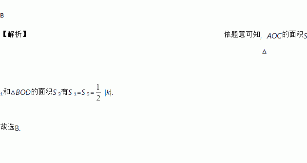 B 【解析】依题意可知,△AOC的面积S ₁和△BOD的面积S ₂有S ₁=S ₂=|k|. 故选B.
