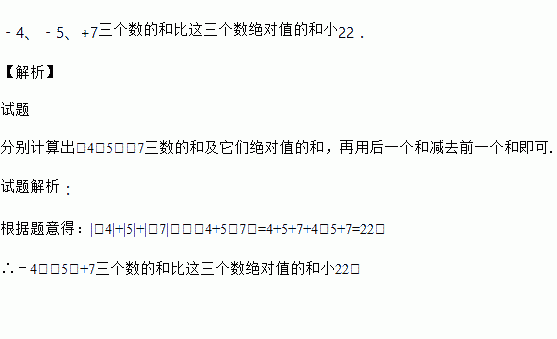 ﹣4,5,﹣7 三数的和比这三数的绝对值的和小多少?