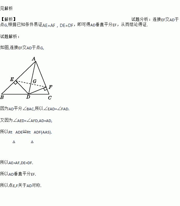 如图,AD为△ABC的角平分线,DE⊥AB于点E,DF⊥AC于点F.试说明:点E,F关于AD对称.