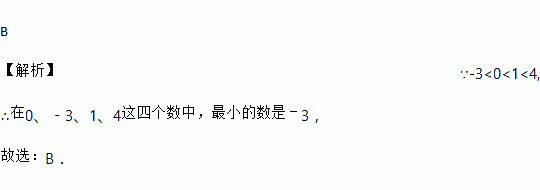 在0、﹣3、1、4这四个数中,最小的数是( )
