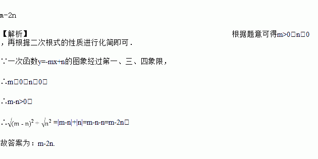 一次函数y=mx+n的图象经过一、三、四象限,则化简所得的结果__.