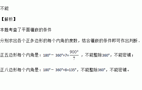 用一种正五边形或正八边形的瓷砖_______铺满地面.(填“能”或“不能”)