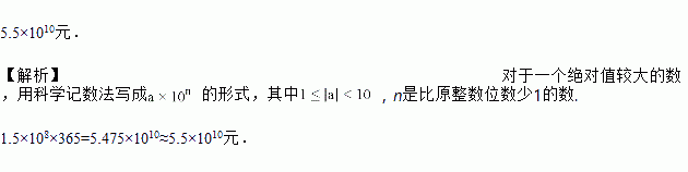 据测算,我国每天因土地沙漠化造成的经济损失为1.5亿元,若一年按365天计算,我国一年因土地沙漠化造成的经济损失为多少元(用科学记数法表示,且保留两个有效数字)?