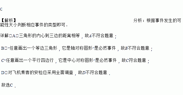 C. “任意画出一个平行四边行,它是中心对称图形”是必然事件
