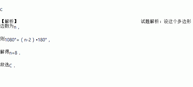 一个多边形内角和是1080°, 则这个多边形的边数为( )