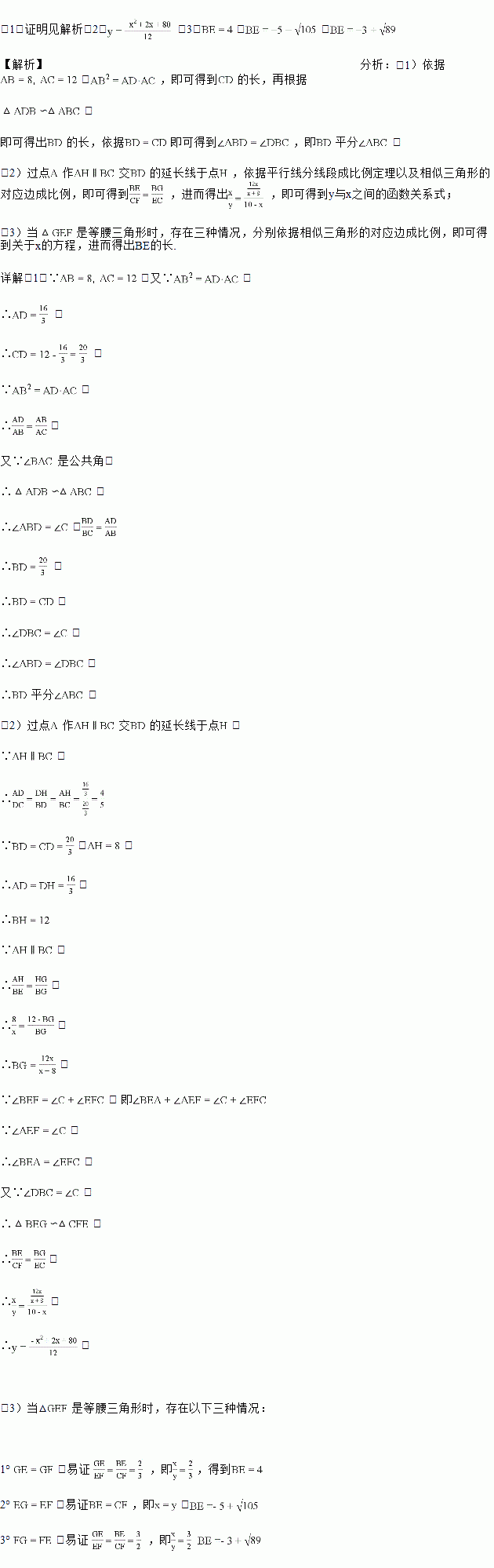 ,联结BD,点E、F分别是BC、AC上两点(点E不与B、C重合),,AE与BD相交于点G.![]()