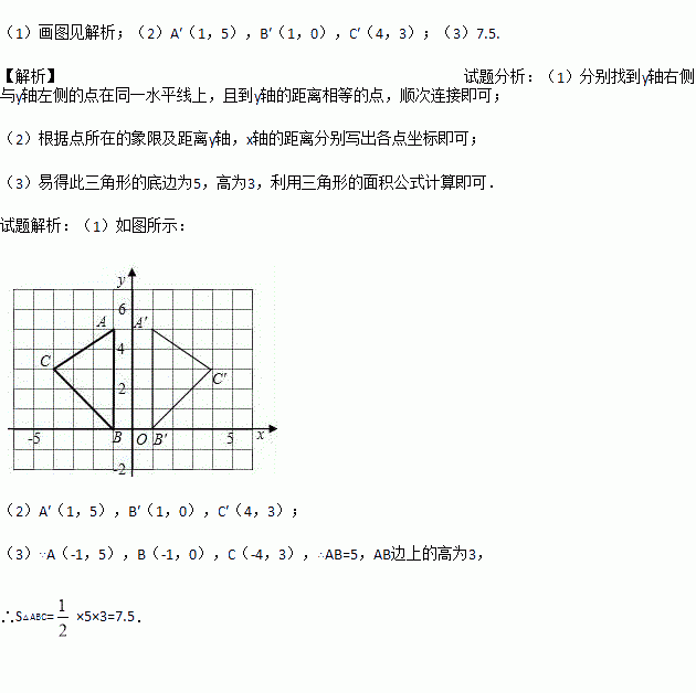 (1)请画出△ABC关于y轴对称的△A′B′C′(其中A′,B′,C′分别是A,B,C的对应点,不写画法);