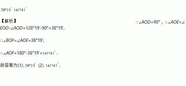 如图,直线AB、EF相交于O点,CD⊥AB于O点,,则的度数分别为 _______,_______.