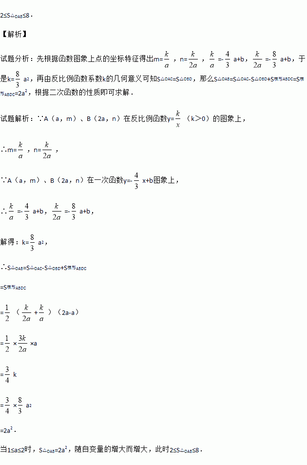 x+b图象上的两个不同的交点,分别过A、B两点作x轴的垂线,垂足分别为C、D,连结OA、OB,若已知1≤a≤2,则求S△OAB的取值范围.