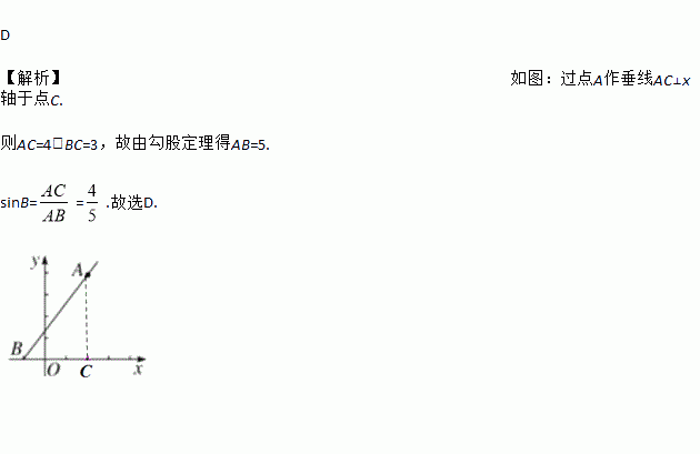 如图,已知∠α的一边在x轴上,另一边经过点A(2,4),顶点为B(-1,0),则sinα的值是( )