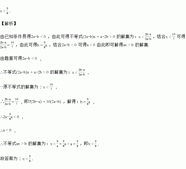 于x的不等式的解为,则不等式的解为_______。
