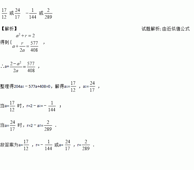 时,近似公式中的a是________,r是________.