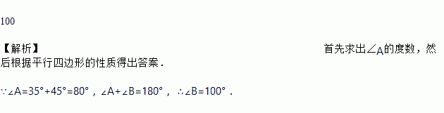 平行四边形ABCD中一条对角线分∠A为35°和45°,则∠B=______________度.