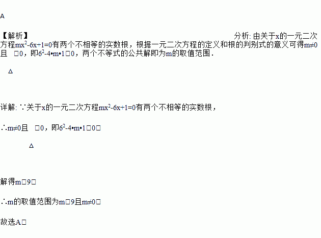若方程有两个不相等的实数根,则m的取值范围是( )