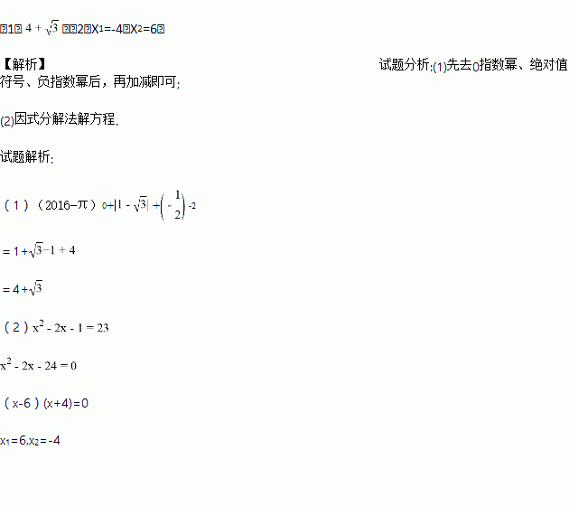 (1)计算:(2016-π)0++-2